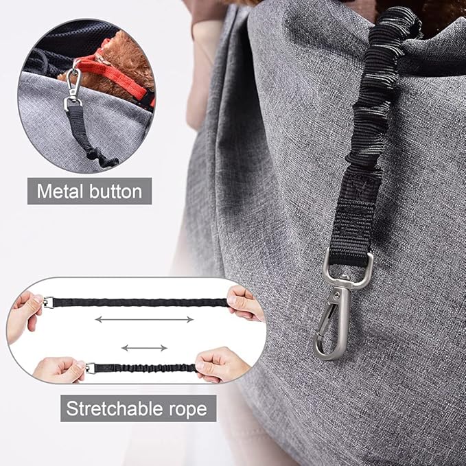 - SAFE: If your pet gets bored and decides to jump out of it, the collar clip and air mesh could prevent the pet from falling. The metal clip is attached to a sturdy and elastic string, make sure clip it to the collar or harness before moving. Black air mesh is breathable and soft, your pets would not hate it.