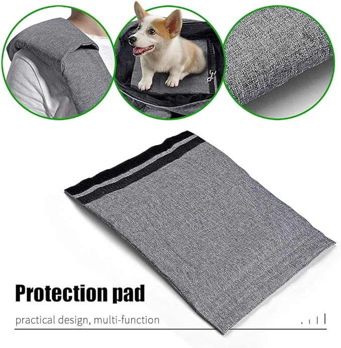 - PAD: It could be a shoulder pad or a cushion for pets. The strap is soft and wide, which can evenly distribute the weight to your whole body. The pad also provides extra structural support for the four-leg kid if you put it at the bottom of the bag, they feel much better when sit or stand on this flat and soft cushion.