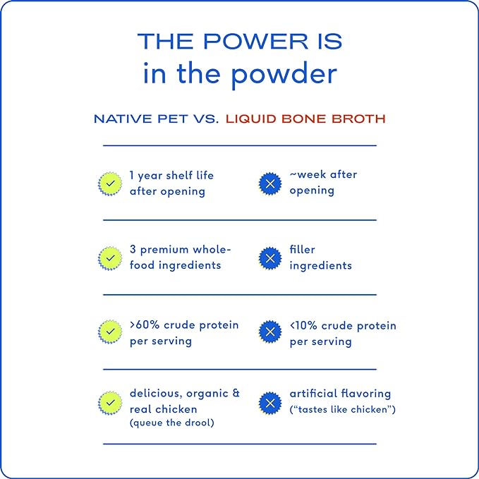 Native Pet Bone Broth for Dogs and Cats – Chicken Broth for Cats & Dogs - Dog Bone Broth Powder, Dog Food Topper for Picky Eaters - Dog Gravy Topper for Dry Food – Dog Broth & Cat Broth – 5.75 oz