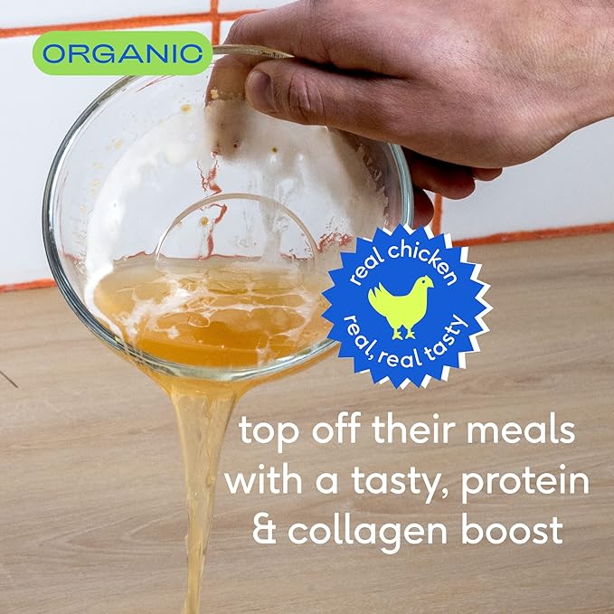 - Perfect For Picky Eaters: With only 3 organic ingredients, this chicken bone broth is a hit among finicky dogs and cats. A tasty cat and dog food topper that's sure to get tails wagging and whiskers twitching!