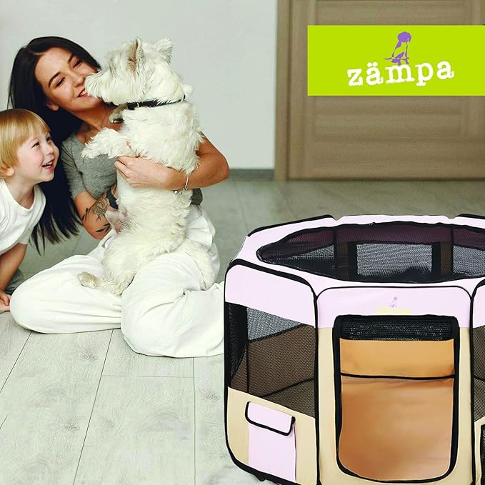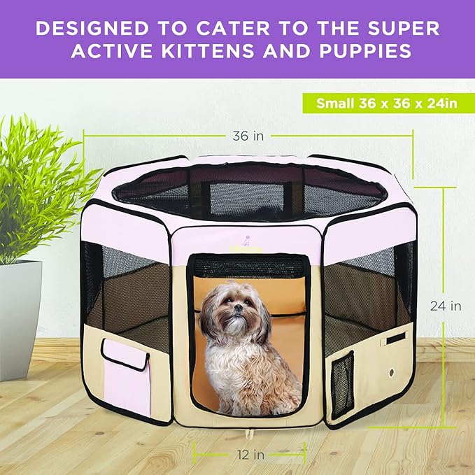 Zampa Puppy Playpen Small 36"x36"x24" Portable Pop Up Playpen for Dog and Cat, Foldable | Indoor/Outdoor Kitten Pen & Travel Pet Carrier + Carrying Case.