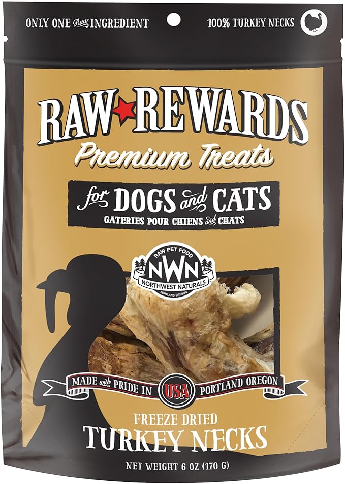 Northwest Naturals Raw Rewards Freeze-Dried Turkey Neck Treats for Dogs and Cats - Whole Neck - Healthy, 1 Ingredient, Human Grade Pet Food, All Natural - 6 Oz