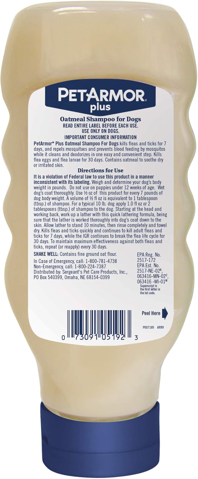 PetArmor Plus Flea and Tick Shampoo for Dogs, Oatmeal Flea Shampoo Kills Fleas, Ticks, and More, Tropical Breeze Scent, 18oz