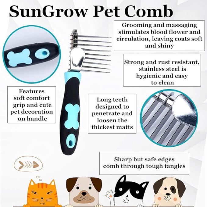 - Great Gift For Vet Or Pet Lover --- Because all pets require some type of grooming, any pet lover would love a high-quality grooming tool such as the SunGrow Stainless Steel Pet Comb as a gift. The cute and efficient pet comb is also a great gift for your veterinarian, vet assistant and especially your local humane society. Donating gifts to the rescue and humane society helps organizations that are often non-profit and in need of all sorts of pet-related items.