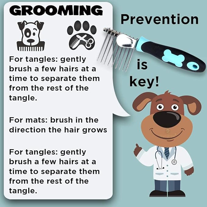 - Professional Grade For At-Home Grooming --- Quick and easy to use, the 2.5” wide pet comb works for undercoats, deshedding, dematting and detangling. It is ideal for grooming at home in between professional groomings, as neglect and lack of grooming can cause tangles and knots. The dog and cat comb gently massages your pet, improving circulation and leaving its coat soft and shiny.