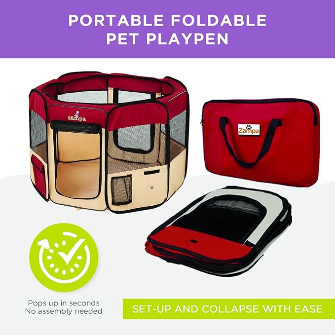 Zampa Pop Up Portable Large 61"x61"x30" Playpen for Dog and Cat, Foldable | Indoor/Outdoor Pen & Travel Pet Carrier + Carrying Case