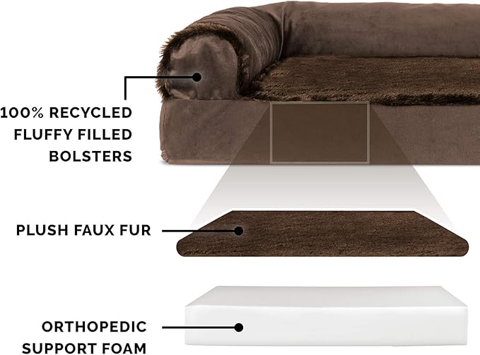 Furhaven Orthopedic Dog Bed for Large Dogs w/ Removable Bolsters & Washable Cover, For Dogs Up to 125 lbs - Plush & Velvet L Shaped Chaise - Sable Brown, Jumbo Plus/XXL