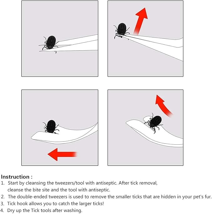 - Easy to use: Our tools require no instruction; The tiick removal fork can be used to remove larger tiicks. The double-ended tweezer is used to remove the smaller tiicks. The ultra-fine-tip tweezers can be used to precisely remove tiny tiicks.