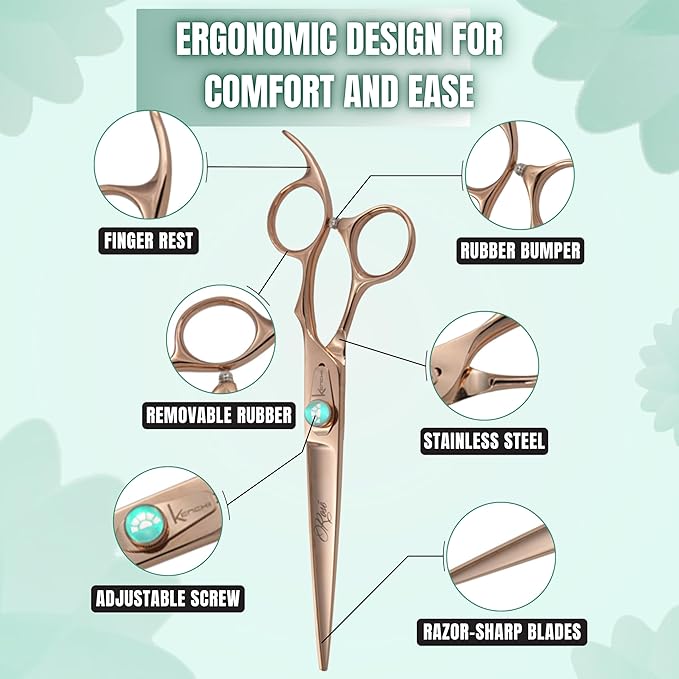 Kenchii Rose Dog Grooming Scissors, 7 Inch Straight Shears, Dog Scissors for Grooming, Ergonomic Design for Comfort and Precision, Heavy Duty, Durable and Sharp