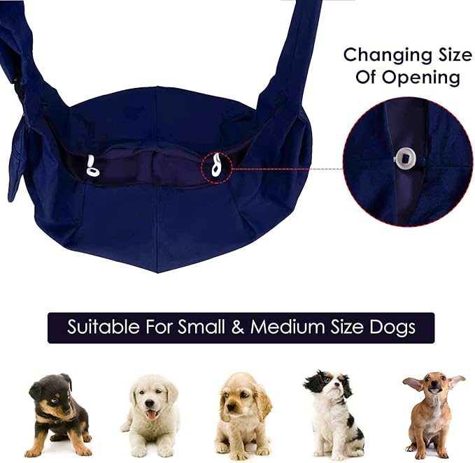 Lukovee Pet Sling, Hand Free Dog Sling Carrier Adjustable Padded Strap Tote Bag Breathable Cotton Shoulder Bag Front Pocket Safety Belt Carrying Small Dog Cat Puppy Machine Washable (DBL, M)