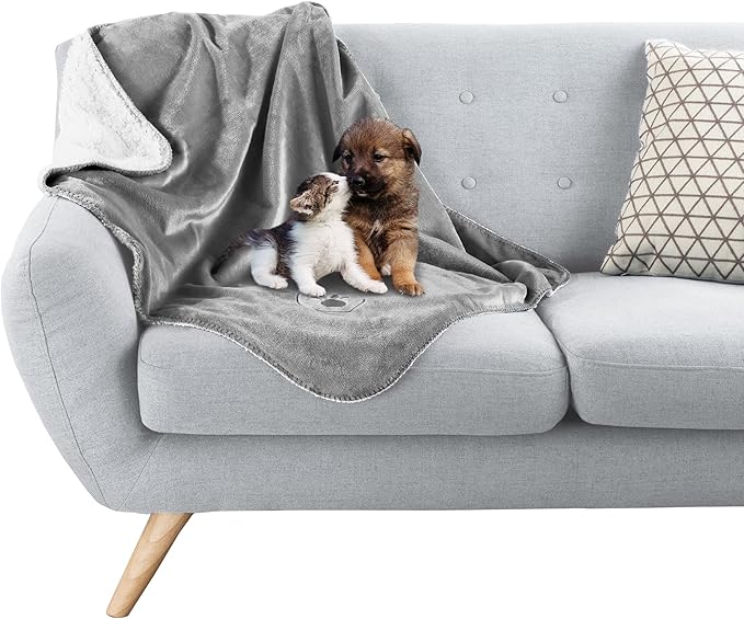 PETMAKER Waterproof Pet Blanket - 30x40-Inch Reversible Sherpa Fleece Throw Protects Couches, Cars, and Beds from Spills, Stains, and Fur (Gray)