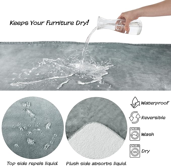 - DOG BLANKET WATERPROOF - This blanket has coated flannel on one side that repels water, and absorbent Sherpa fleece on the other side, effectively stopping liquid from seeping through. This waterproof blanket is also perfect for cats.