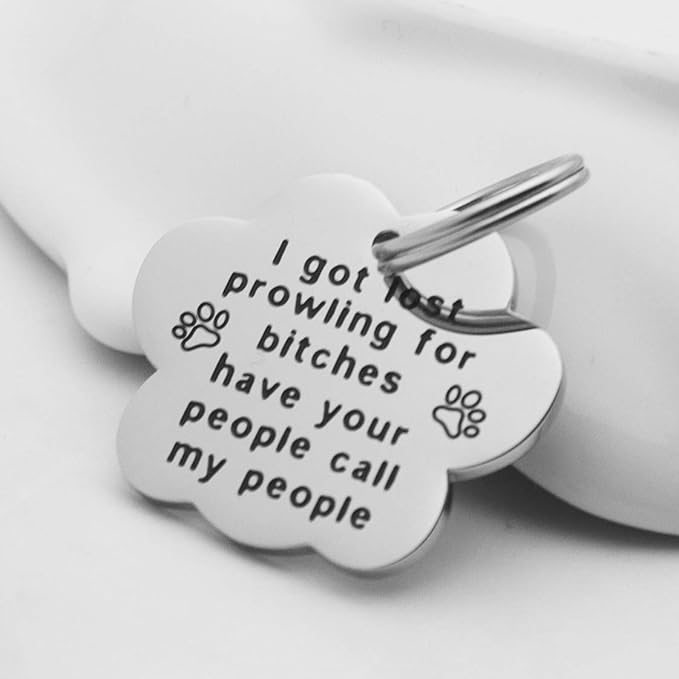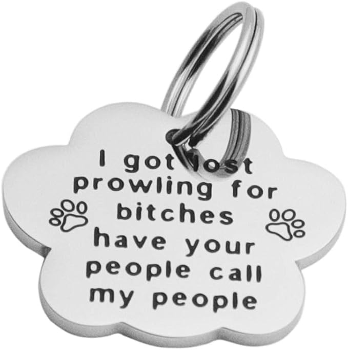 Funny Pet Tag Stainless Steel Pet Tags Dog Tag for Collar Puppy Tag (Paw Print-I Got Lost Prowling for Bitches)
