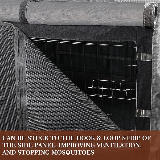 - WINDOW SCREEN INCLUDED: The attached mesh window screen can be stuck to the Hook & Loop strip of the side panel on the dog kennel cover, improving ventilation, stopping mosquitoes, and allowing your dog to see things outside
