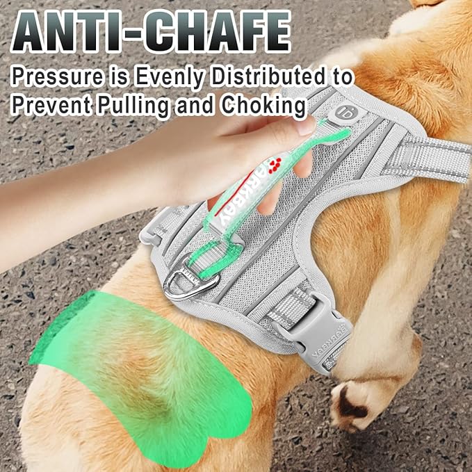 BARKBAY No Pull Dog Harness Large Reflective Dog Harness with Front Clip and Easy Control Handle for Walking Training Running with ID tag Pocket(Grey,XL)