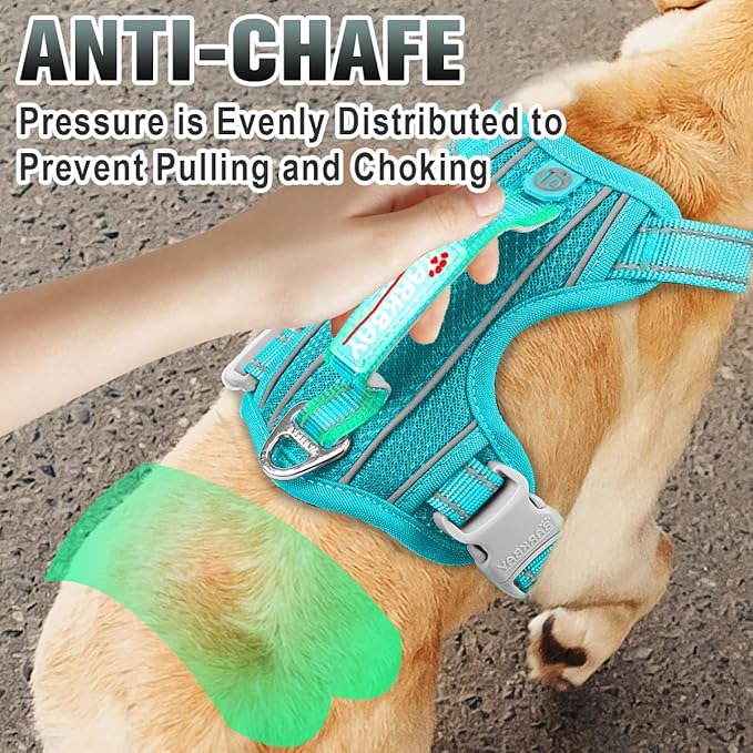 BARKBAY No Pull Dog Harness Large Reflective Dog Harness with Front Clip and Easy Control Handle for Walking Training Running with ID tag Pocket(Ocean Blue,S)