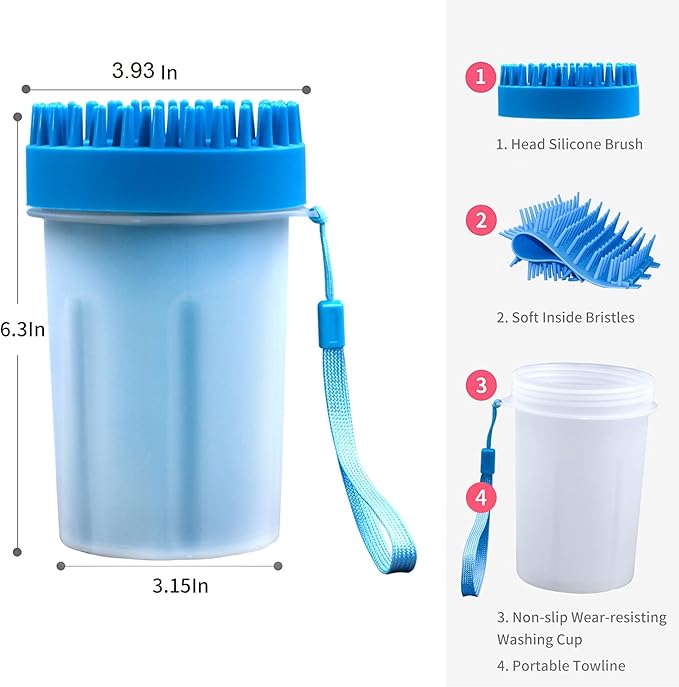 - Easy to use -Fill it with water, put your dog's paws in the cup, gently twist the container and move it up and down.