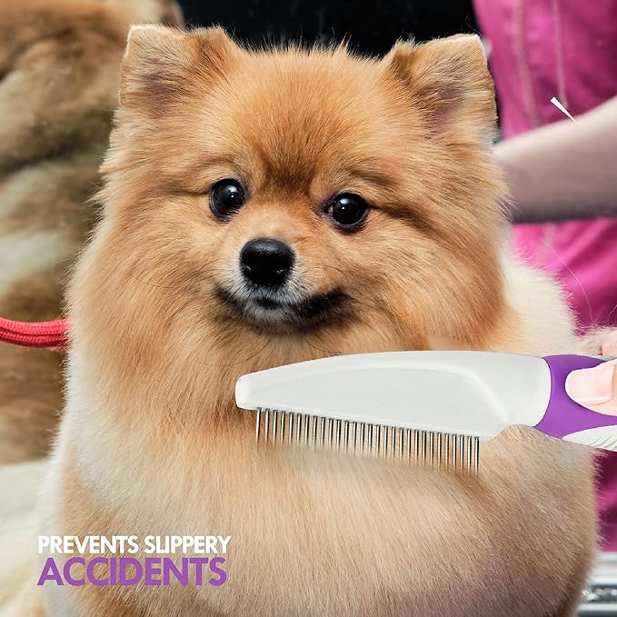 - Slip-proof, Easy Grip: Highlighted by its ergonomic shape & ridged texture, the contoured plastic handle of the Poodle Pet Dog Pet Comb is easy to grip.