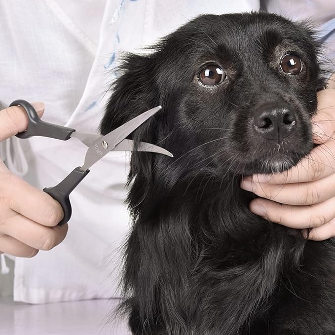 - 【SAFETY ROUND TIPS SCISSOR 】Dog scissor arc is designed to prevent damage to the pet, and some hair is cut like face, eye, ear,tactile , lips line and hair on the feet and claws.