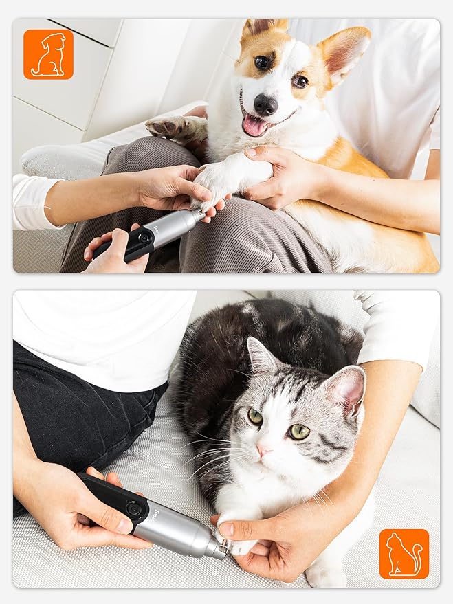 - ❤ LED Light Design - The upgraded dog nail grinder is equipped with a new LED light that is bright enough to make it easier for you to trim your pet's nails with precision and avoid over-grinding or accidental injury.