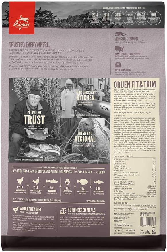 Orijen 2 Pack of Fit & Trim Dog Food, 4.5 Pounds Each, Grain-Free Kibble Made in The USA