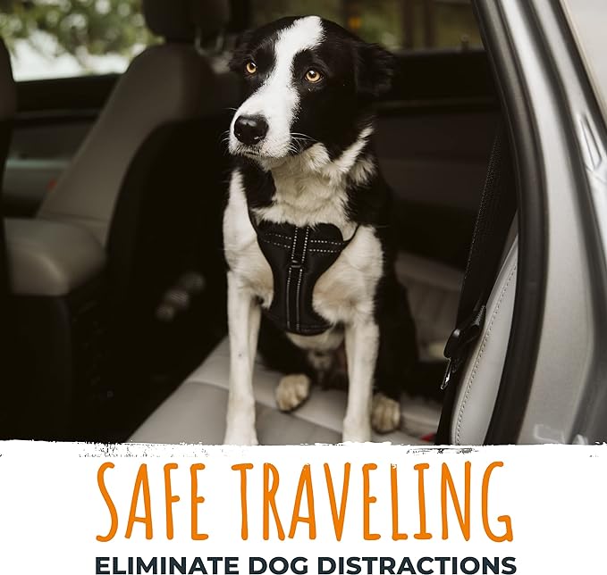 - KEEP YOUR DOG SAFE: Your dog loves car rides, but roaming dogs can lead to distractions and dangerous conditions. Keep both you and your pup secure with our car dog harness seat belt, which easily buckles into any seatbelt outlet in your vehicle