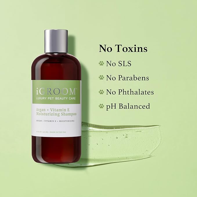 iGroom Argan+Vitamin E Dog Shampoo, Groom Like a Professional, Enhanced Cleaning Power, Reccommended pH Balance, Made in USA, 16 oz