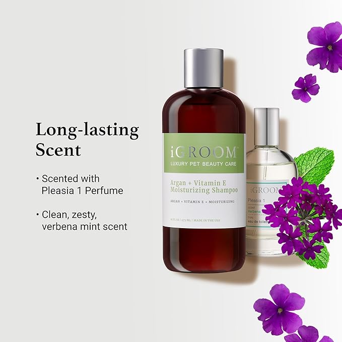 - MOISTURIZING DOG SHAMPOO – a shampoo packed with goodness to improve the overall health of the coat. The nourishing ingredients clean, soothe, and protect the hair and skin. Developed with cleansers that lather quickly and rinse out easily for effortless grooming. Scented with iGroom Pleasia 1 perfume. For maximum results follow with iGroom Argan + Vitamin E Conditioner.
