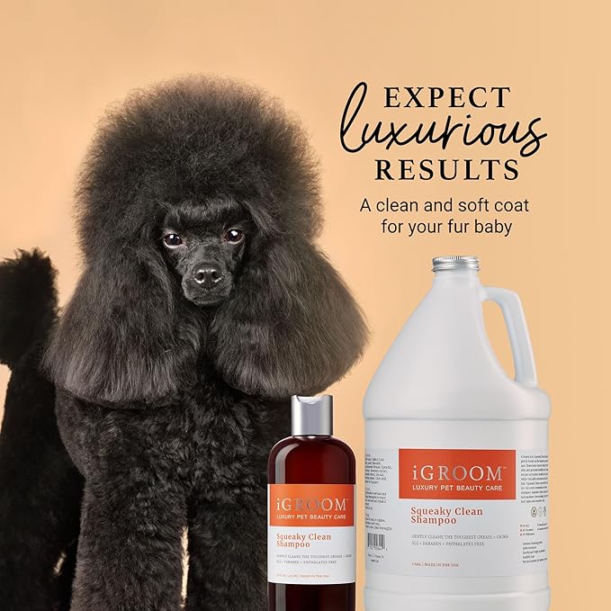 iGroom Squeaky Clean Dog Shampoo, Luxury Pet Beauty Care, Intense Cleaning Power, Chamomile Extracts Sooth Skin, Made in USA (1 GAL)