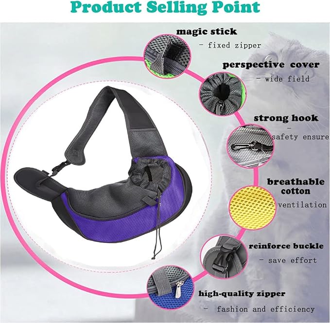 - 【Safe and Convenient】A safety buckle on the inside of the pet sling carrier (it can be connected to a collar) to prevent pets from jumping out. Magic sticker prevents the zipper from slipping and effectively increases safety. The firm buckle design on the shoulder strap is convenient to use and prevents the bag from being disconnected during use.