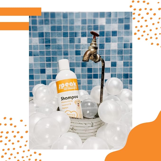 - Contains (1) 17 oz bottle of Speak Pet Products Moisturizing Coconut and Papaya Shampoo for dogs