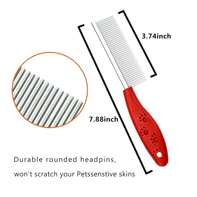 Pet Comb for Dogs & Cats,Small Dog & Cat Grooming Comb 2 Combs,Pet Stainless Steel Teeth Dogs Comb for Removing Matted Fur, Knots & Tangles,Shedding Comb,Red