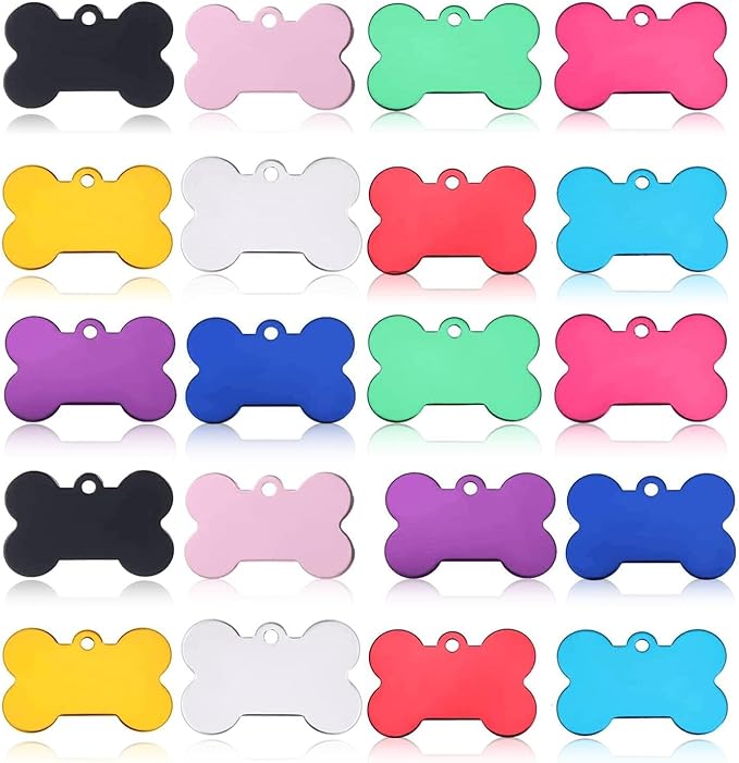 JIAKAI 20 Pcs 38MM Blank Bone Shape Pet ID ,Double Sided Blank Tag Dog Cat Pet Name Phone Number ID Tag Charm Personalized(Random Colors)