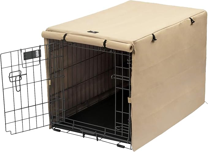 X-ZONE PET Double Door Dog Crate Cover - Polyester Pet Kennel Cover (Fits 24 30 36 42 48 inches Wire Crate) (24 Inch, Tan)