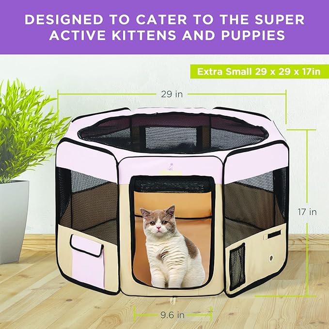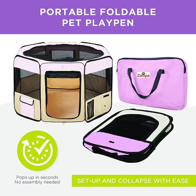 Zampa Puppy Playpen Extra Small 29"x29"x17" Portable Pop Up Playpen for Dog and Cat, Foldable | Indoor/Outdoor Kitten Pen & Travel Pet Carrier + Carrying Case.