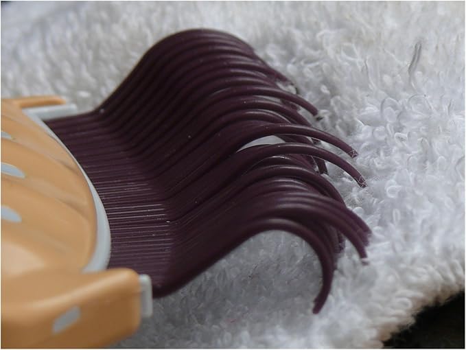 - Unique curved teeth get right down to roots of hair.