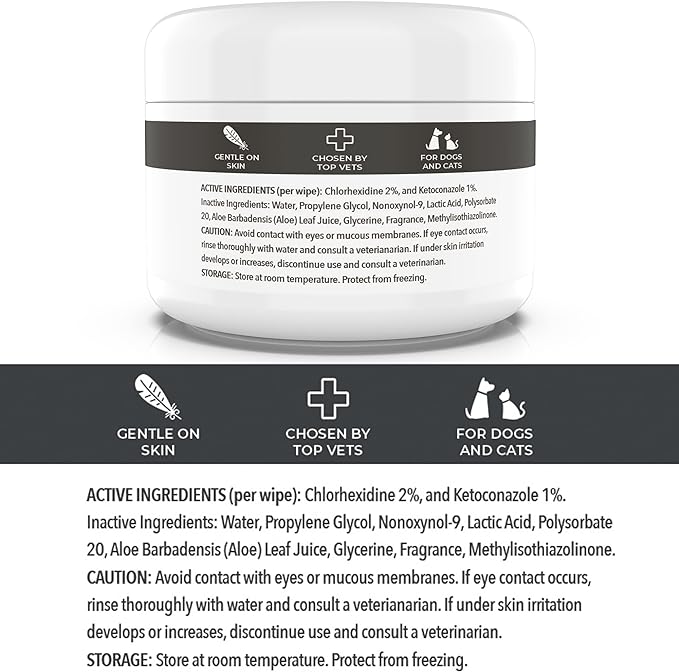 - Smiling Paws Pets - Antibacterial & Antifungal Wipe for Dogs & Cats - Contains Ketoconazole & Chlorhexidine - Skin Treatment for Yeast Infection, Ringworm, Pyoderma, Bacteria & Fungus