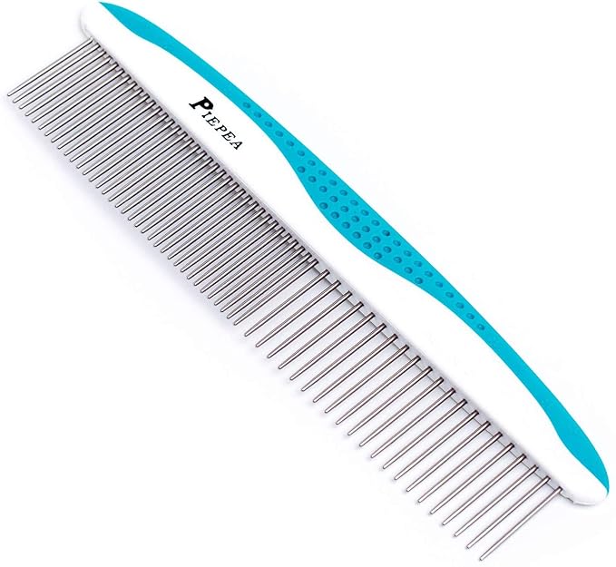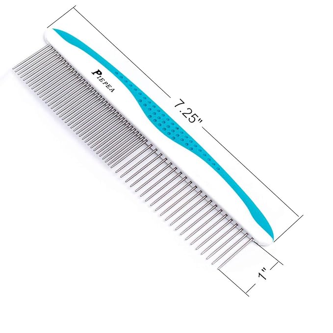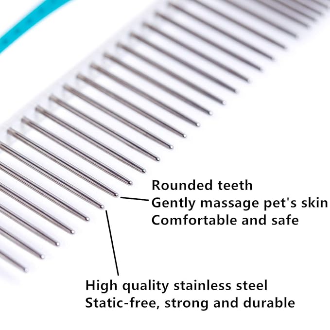 Pet Comb, Stainless Steel Teeth Comb for Dogs & Cats, Pet Hair Comb for Home Grooming Kit, Removes Knots, Mats and Tangles, 7 1/4"