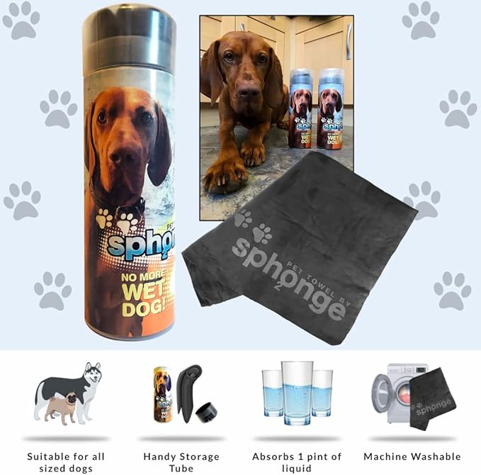 - SUPER ABSORBENT: To make your life easier and quicker when clearing up spills, our pet and dog towel by SPh2ONGE is extremely absorbent and holds x8 its weight in liquid, up to ONE PINT. The towel is made of a unique texture polymer rubber and cotton gauze that is durable and making bathing your pet easy. Sph2onge pet and dog towels are super-soft, ultra-absorbent, skin-friendly, machine washable, and long-lasting.