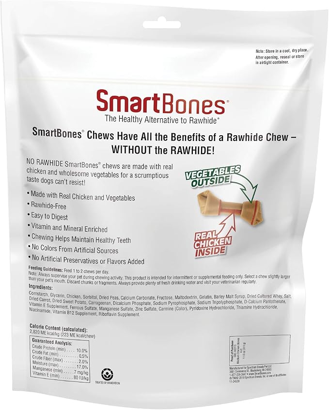 - CHEWING HELPS MAINTAIN HEALTHY TEETH: SmartBones chews have all the benefits of a rawhide chew without the rawhide.