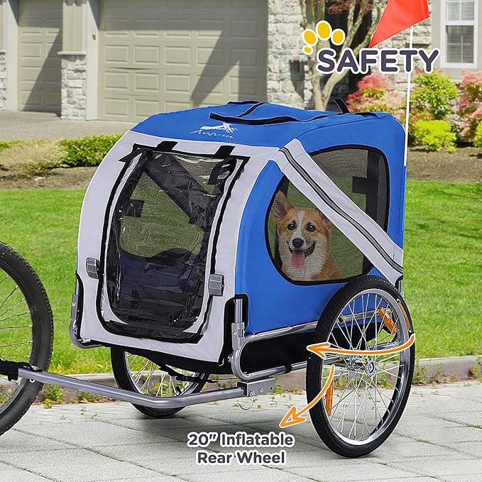 Aosom Dog Bike Trailer Pet Cart Bicycle Wagon Cargo Carrier Attachment for Travel with 3 Entrances Large Wheels for Off-Road & Mesh Screen