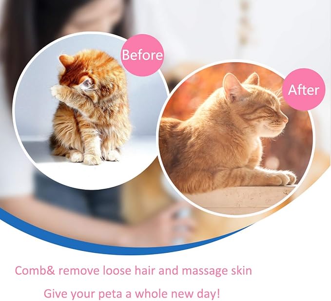 - FLEXIBLE SOFT PROTECTIVE PINS: The de-shedding brushes comes with stainless steel needles with a 60-degree bend and some elasticity, round massage beads on each pin tip to penetrate deep into the fur and clean easily the dirt buried inside without scratching your pet's skin.Your pet will feel comfortable after using on them.