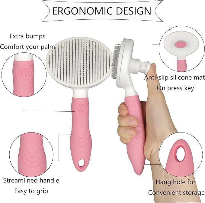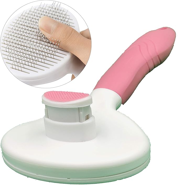KIRTI Self Cleaning Slicker Brush for Dogs and Cats, Pet Grooming Hair Brush with Pin, Removes Shedding Tangled Hair and Massage Pink