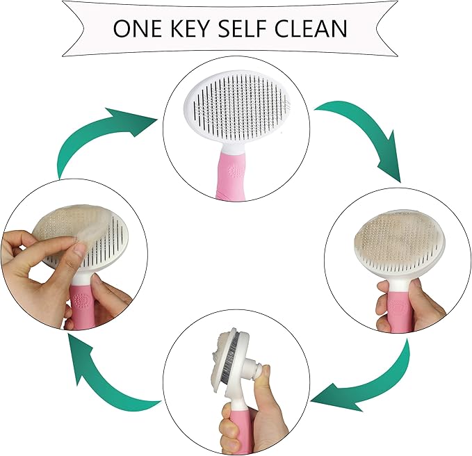 - SELF-CLEANING BUTTON WITH SILICONE PAD: Still upset about cleaning up pet hair?Still feel unwell with your fingers' repeatedly pressing the button?After brushed your pet, simply push the button, wipe the panel, you can remove all the hair easily.The soft non-slip pad on the button makes you feel free from finger pain caused by repeatedly pressing the button.