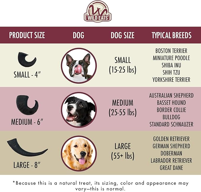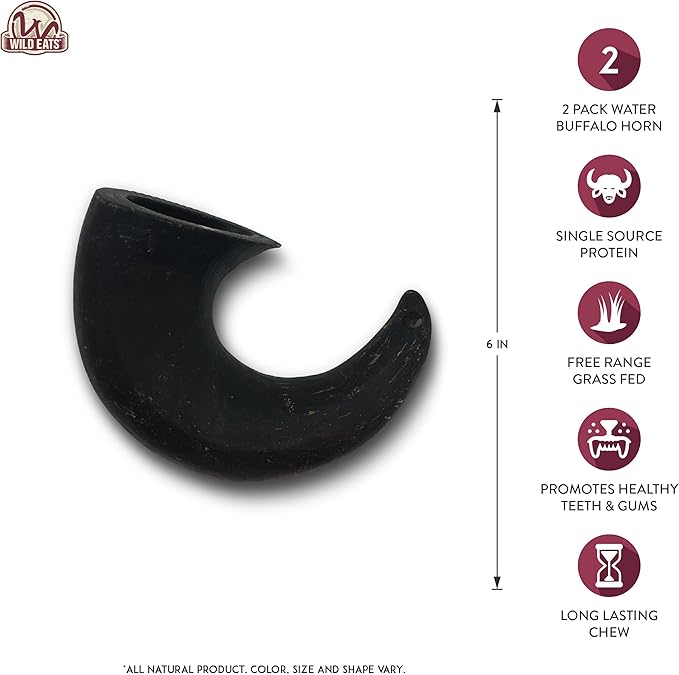 - TOP QUALITY: Wild Eats Water Buffalo Horns are sustainably sourced from grass-fed, free range water buffalo. Processed in human grade facilities held to the highest level of standards. Treat your aggressive chewers with one of three sizes of horns for dogs, much tastier than a nylon chew toy or favorite dog toy.