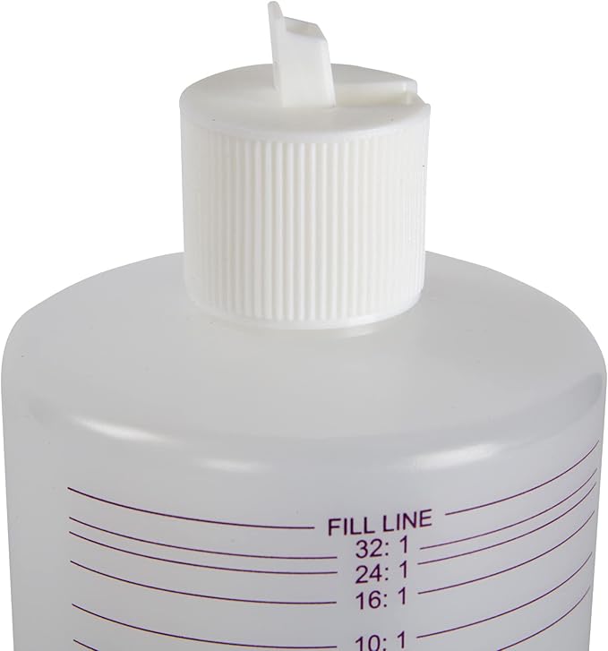 - Ratio Lines - This 32 ounce dilution bottle for pet shampoo has lines for 32:1, 24:1, 16:1, 10:1, 8:1, 4:1, and 1:1.