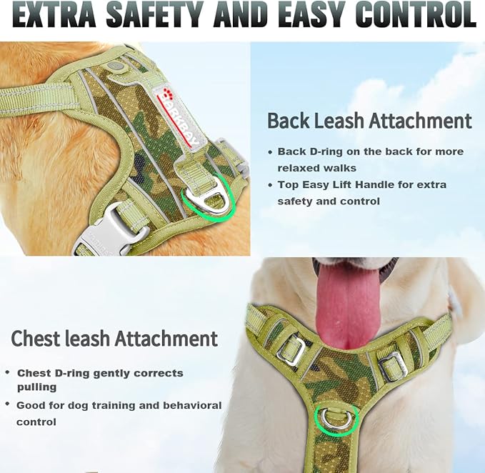 BARKBAY No Pull Dog Harness Large Reflective Dog Harness with Front Clip and Easy Control Handle for Walking Training Running with ID tag Pocket(Camo,L)