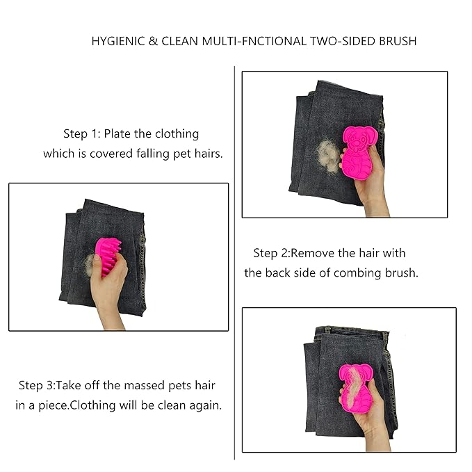 - Hygienic & Clean Multi-functional Two-sided Brush - How to use this brush? Use DRY or WET.Whether it's grooming or cleaning your cat or dog. Back side of brush removes fur from clothing, furniture and all the places.You can simply flush the brush with water after it's uesd so it’s ready for the next time use.