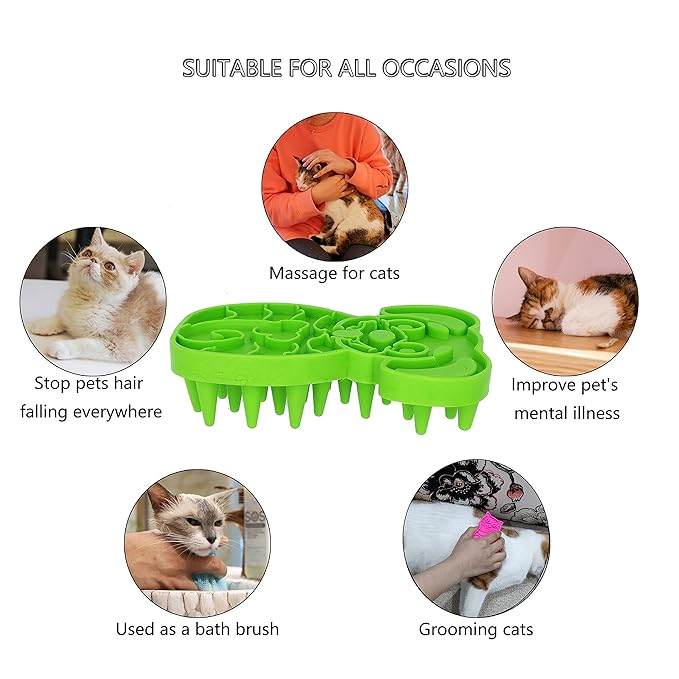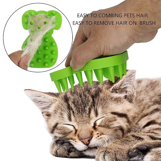 - Soft & Flexible - Durable silicone material that can be flexed freely to suit different body parts of various cats or dogs; Soft bumps will not make them fell any pains. Which effectively loose fur from your pet's coat while your pet is being massaged or bathed. WORKS GREAT ON CAT AND DOG!