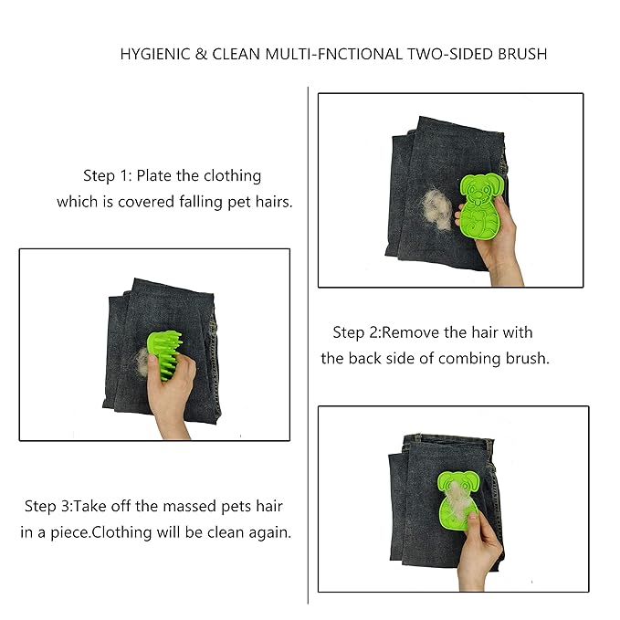 - Hygienic & Clean Multi-functional Two-sided Brush - How to use this brush? Use DRY or WET.Whether it's grooming or cleaning your cat or dog. Back side of brush removes fur from clothing, furniture and all the places.You can simply flush the brush with water after it's uesd so it’s ready for the next time use.